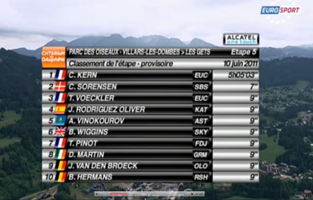 Stage 5 results: Europcar's Christophe Kern solos the final kms to Les Gets to lock up his Tour de France roster spot; no change at the top of the GC