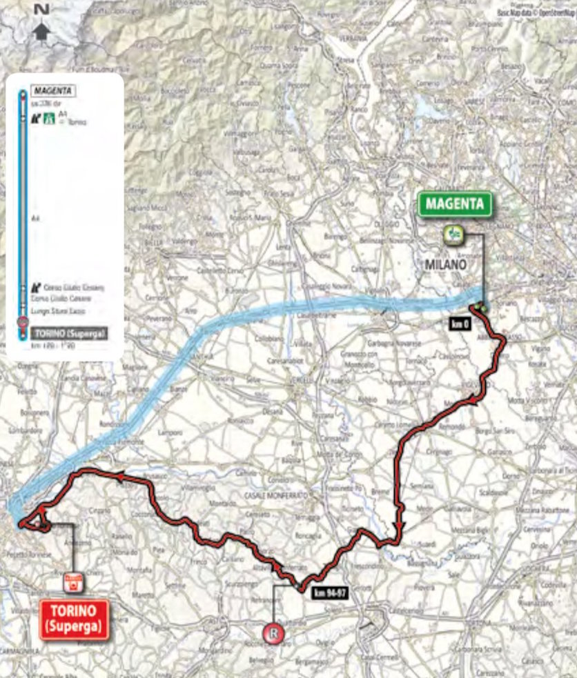 2018 Milano-Torino Route Map