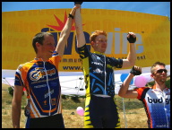 Masters 35 1-2-3 finish - Safeway's Dan Martin charges hard and almost beats Spine's Michael Hutchinson in a bike throw photo finish