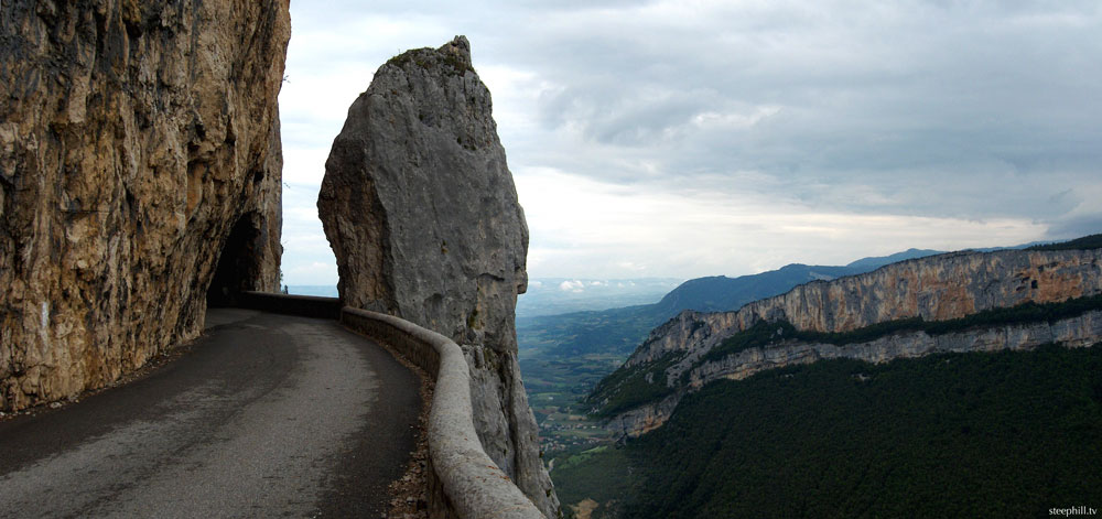Regional du VercorsThe star attractions of this ride are the corniches: Route de Presles and Cirque de Combe Laval, with the lookout at historical Calvaire de Valchevrière, the valley road through Gorges de la Bourne and the stiff finishing climb up to Rencurel also being memorable. For most of this ride you are either climbing for extended periods or following the flat valley roads.