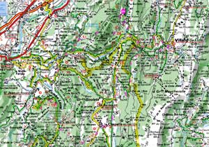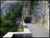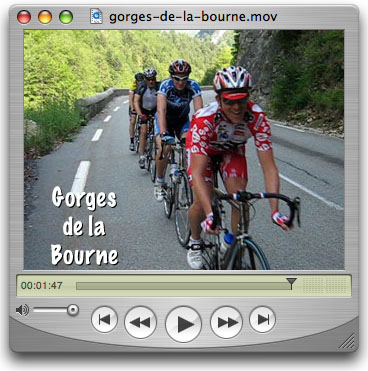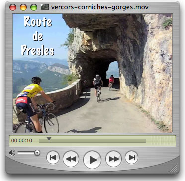 Click the pic to watch The first climb was a gradual 7 km ascent from St Jean to Col du Gaudissart (Combe Laval) followed by small rollers for another 7 km ride up 100 meters more to Col de la Machine (el 1015m). The second good climb, the most difficult of this ride, was from Herbouilly (el 700) to an unnamed point 1352 metres high and 8 km along on D221. This ride ended with the final climb (6 km) back up to our gite several km past Rencurel. All the climbs had reasonable grades mostly in the 5% to 9% range. The rest of the details can be gleened from the accompanying photos and videos which were taken over four days so you'll see lots of weather variation, but they are mostly arranged to follow the route. By the way, when not closed for repairs, the scenic Grand Goulets can be substituted for Combe Laval to reduce the distance and amount of climbing.