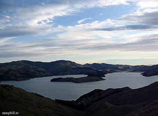 According Nature Magazine, the August 15th 2006 aerial photo of Christchurch and Banks Peninsula taken from the International Space Station is one of "most arresting" photos of 2006. Cycling Banks Peninsula is as challenging as it looks. Our Chirstmas day loop from Christchurch through Akaroa featured 12000 feet of climbing in 105 miles with only one of the climbs hitting the 2000 foot elevation mark. No wonder Lonely Planet's Cycling New Zealand(out-of-print) recommends loaded cyclists allow four days for this ride. The weather for our ride started out great and then slowly deteriorated into a thick fog by the end of the day. As the weather deteriorated so did Rebecca's energy. Her health wasn't 100% during the trip and she would later call it the toughest day she's spent on a bike. So our Christmas day ride in Christchurch and Banks Peninsula was up and down in more ways than one.