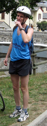 Rebecca's sabbatical host, Andreas Merdes, drove us to "Ax" where the three of us camped near the busy town. The next day we set off for an excellent 140k loop with 3500m of climbing through the Pays de Sault region east of Ax. Now Andreas might not look like a cyclist, but as the former ultra-marathon champion of Scotland and an avid recreational runner, he's in excellent shape. His thin frame was well suited for the mountainous route en-store, but the same couldn't be said for his bike frame. His heavy commuting bike with toe strap pedals wasn't ideal, but amazingly we never had to wait too long at the top of the cols and he never complained although we noticed him grimacing from time to time.