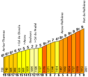 ![]() The longer and steeper east side of Port de Pailheres (courtesy of cyclingcols.com) |