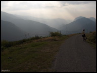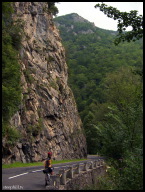 For most of the north part of the loop and up to Camturac, we rode 40k of hilly terrain through picturesque French countryside that overlooked several Medieval villages frozen in time. In deserted Rodome, we stopped for a sip at a fire hydrant-like street tap. We then carried on to Galinagues before climbing back up to the Plateau to Sault to pick up the main road at Camturac. On our way back to Ax-les-Thermes, we slipped off the main road that most cars take back down to the valley and instead took the D2 corniche. Also, the night before we recon'ed another one-laner carved into the side of the valley hill, which offers a fabulous view of Vallee d'Orlu and Ax-les-Thermes. The haze and late-afternooon glare on both days is evident in the photos. In general, the photo conditions were poor for most of the ride; it was either foggy or hazy. That's my excuse anyway.