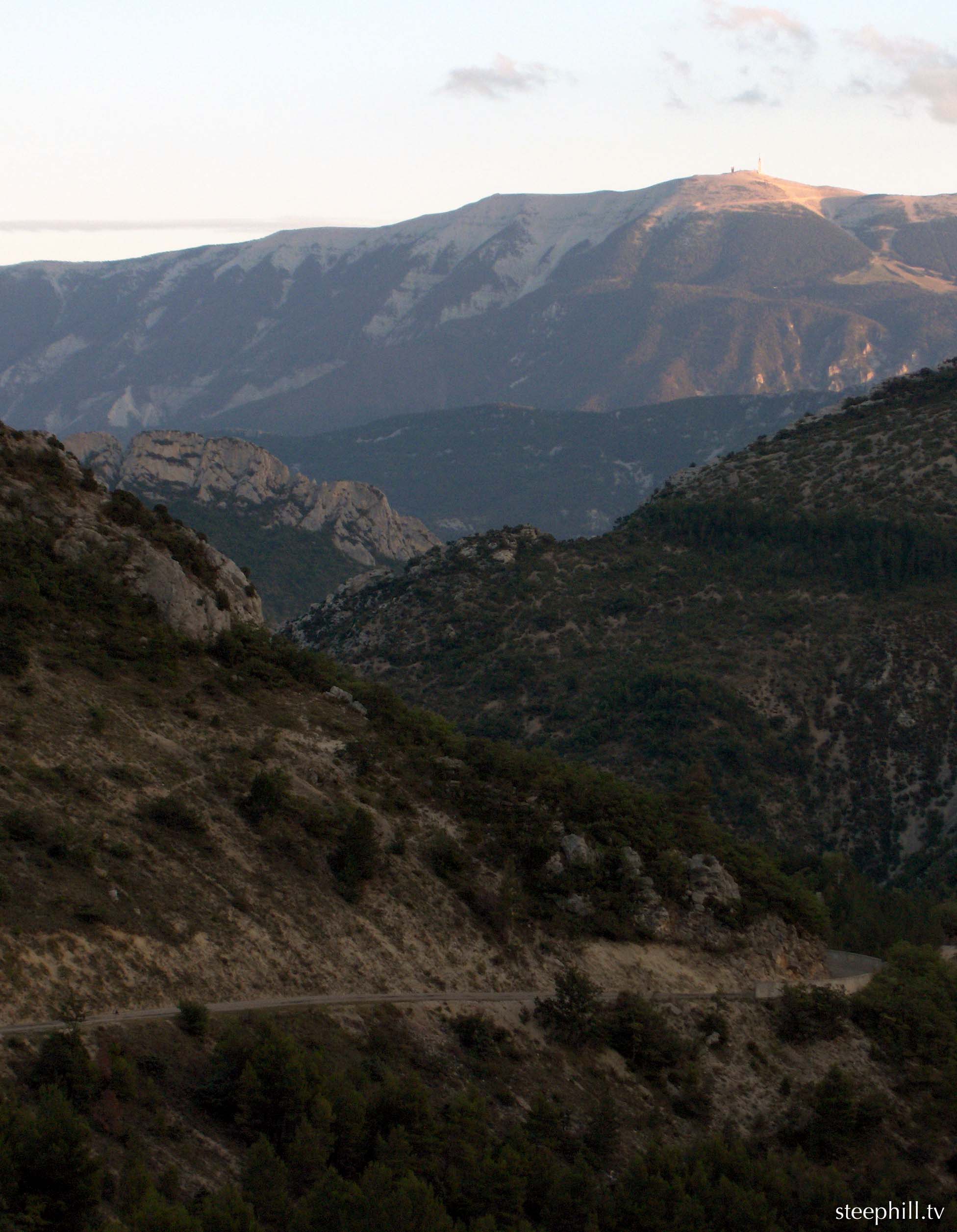 The sun setting on Mont Ventoux viewed from Col d'Ey