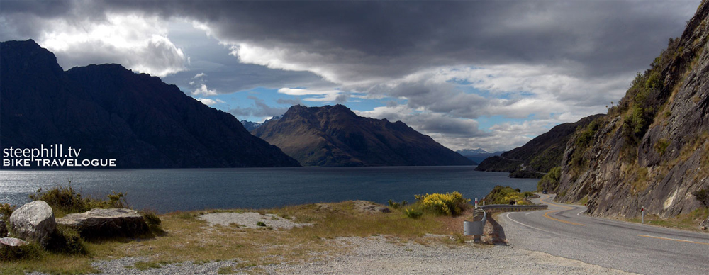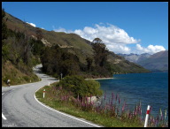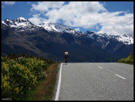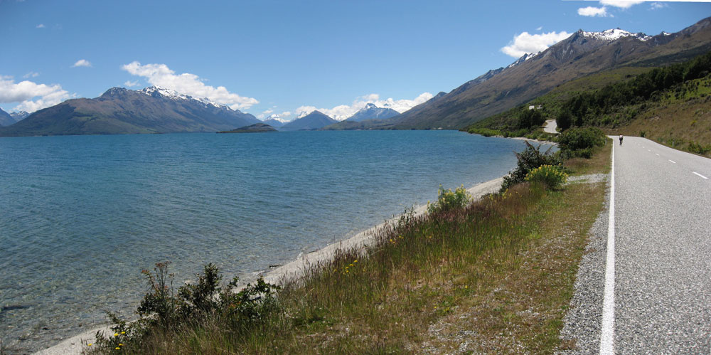 There is a road that runs 90 km along the entire east side of Lake Wakatipu that is paradise for a road cyclist. As you bob and weave along the shoreline, the view of mountains on both sides of the lake is absolutely remarkable. (I could say beautiful or spectacular, but you probably think I've overused those words). Remarkable is more fitting anyway since there is a mountain range at the halfway point called "The Remarkables." The entire 90k shoreline on the west side of the lake is uninhabited. Other than the somewhat busy short stretch leading into Queenstown, at the midway point, this ride can appropriately be labeled The Remarkable Ride.