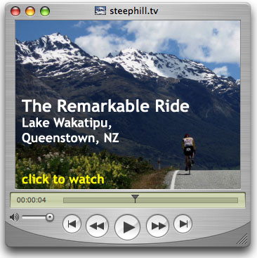 If you like mountain biking than you'll really love this place and you should consider bringing a mountain bike with a set of knobbie and slick tires. There are many trails for a wide range of riders. While out walking one night we took a "shortcut" up one of the gnarely mountain bike tracks in the Queenstown hills that was so vertical we could barely climb it and I'll tell you, miss any of the banked corners on this section and you can kiss your holiday good-bye. Dana Farnsworth of Outdoor Travels had this to say about the local favorite Skippers Canyon track: "Big scenery, a scary mountain road and a downhill ride equal one great New Zealand ride!." You climb through former gold fields in the canyon, later made famous in the Lord of the Rings "Road to Middle Earth", to a Queenstown overlook with a literally remarkable view from the top. By the way, Glenorchy was also one of the many sites used in Lord of the Rings; however, one should not get to enticed by the New Zealand Lord of the Rings scenes since many of them were digitally enhanced often overlaying/adding multiple scenes together. Of course, we here at steephill.tv have given you the authentic product.