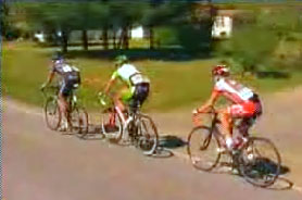 The three man main break today (L-R): Glen Chadwick (Navigators Insurance), Garrett Peltonen (Priority Health), Austin King (Jittery Joe's) heading into Rome before being catch. |