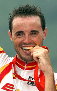Alejandro Valverde celebrating his first Grand Tour win