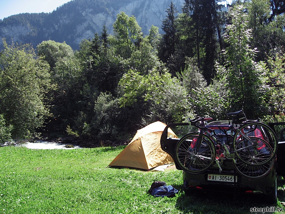Descending back to our campsite near Chateau d'Oex. Stage 3 will also descend this road after climbing the category 1 Col des Mosses.