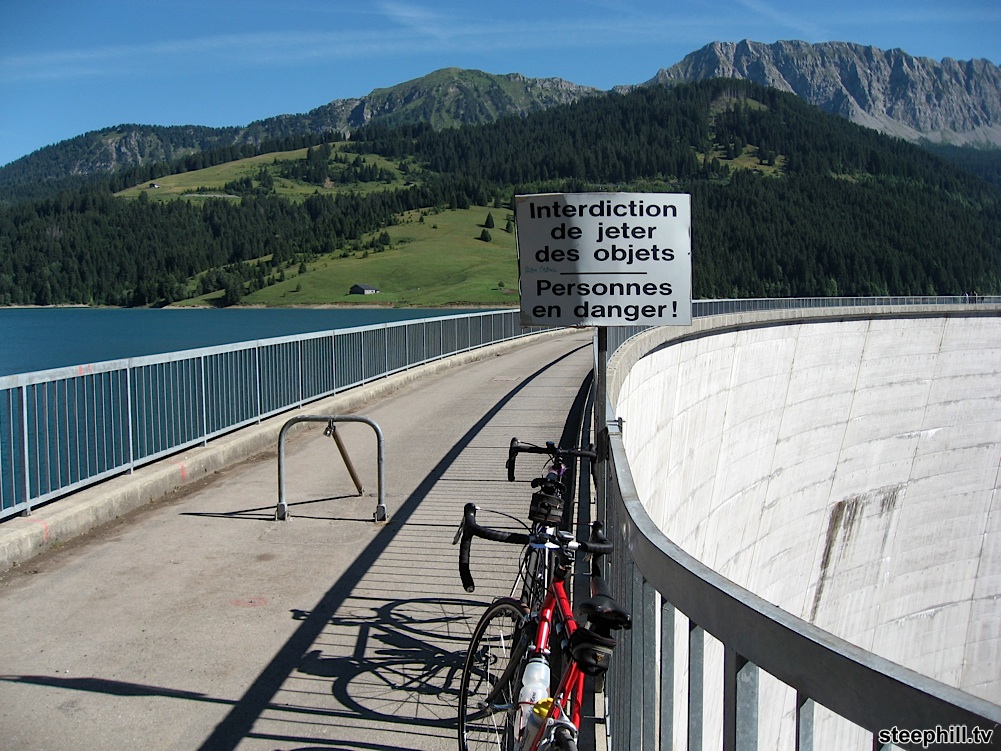 One-hand 360 bikecam while crossing the dam (01:45)June 14, 2010 update: Today's Stage 3 of Tour de Suisse will pass by/along one of the best rides we've ever done. (The race will stick to the two lane roads) The photos for this ride were, until now, part of my mountainous backlog of ride reports, but it's now or never for this one.
