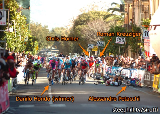 Stage 3 Results 1 Alessandro Petacchi (Lampre) 2 Enrico Rossi (Flaminia) 3 Jacopo Guarnieri (Liquigas) General Classification after stage 3 1 Roman Kreuziger (Cze) Liquigas 2 Christopher Horner (USA) RadioShack :04 3 Thomas Voeckler (Fra) Bbox Bouyges Telecom :06