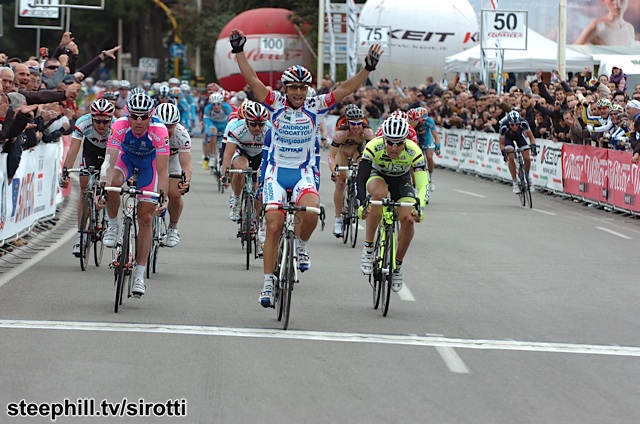 Stage 1 Results 1 Francesco Gavazzi (Ita) Lampre – Farnese Vini 4:16:50 2 Oscar Gatto (Ita) ISD – Neri 3 Giovanni Visconti (Ita) ISD – Neri 4 Francesco Failli (Ita) Acqua & Sapone 5 Przemyslaw Niemec (Pol) Miche 6 Damiano Caruso (Ita) De Rosa – Stac Plastic 7 Giampaolo Caruso (Ita) Ceramica Flaminia 8 Luca Mazzanti (Ita) Team Katusha 9 Massimi Giunti (Ita) Androni Giocattoli 10 Massimiliano Gentili (Ita) Ceramica Flaminia