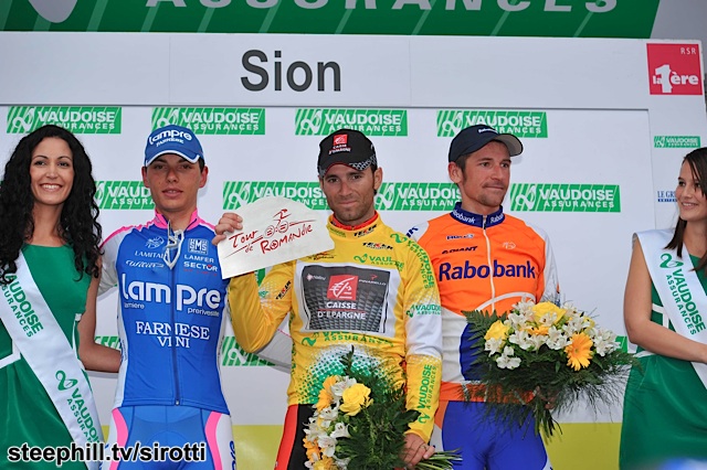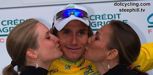 Stage 4 results 1 Simon Spilak (Lampre) 2 Peter Sagan (Liquigas) + 0:13 3 Philippe Gilbert (Pharma-Lotto Omega) 4 Hubert Dupont (AG2R) + 0:15 5 Alexander Valverde (Caisse d'Epargne) + 0:22 6 Marcel Wyss (Cervélo) 7 Vladimir Karpets (Katusha) 8 Janez Brajkovic (RadioShack) 9 Michael Rogers (HTC-Columbia) 10 Jeremy Roy (Française DES Jeux) General classification after stage 4 1 Michael Rogers (HTC-Columbia) 9:56:03 2 Alexander Valverde (Caisse d'Epargne) + 0:01 3 Simon Spilak (Lampre) + 0:05 4 Vladimir Karpets (Katusha) + 0:07 5 Denis Menchov (Rabobanbk) + 0:11 6 Janez Brajkovic (RadioShack) + 0:17 7 Richie Porte (Saxo Bank) + 0:19 8 Christophe Moreau (Caisse d'Epargne) + 0:26 9 Tiago Machado (Team Radioshack) + 0:41 10 Peter Sagan (Liquigas)