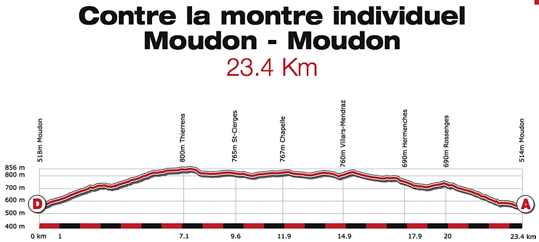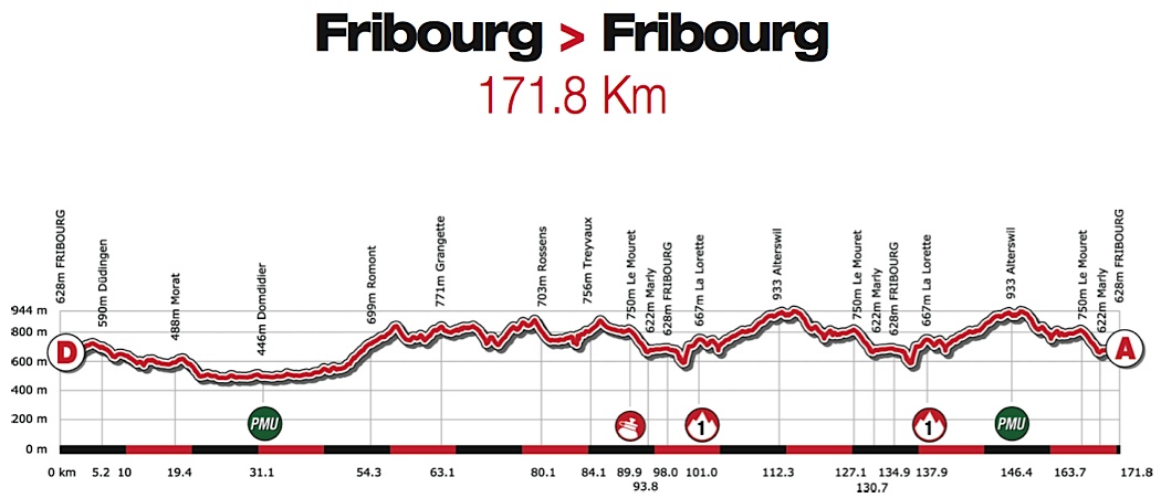 April 29 update: Stage 3 is non-technical 23.4 km individual time-trial loop. There is a gradual climb for the first 7 km followed by a gradual rolling descent back to the start in Moudon (photo left). It won't be sunny like the photo; rain is forecasted for the remaining stages. See the race summary table (r) for links to the stage profile, detailed start, finish and stage maps, including the last three km, and timetable. — Steve