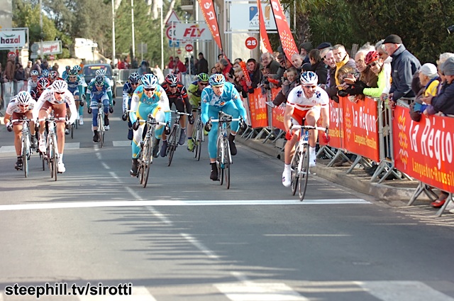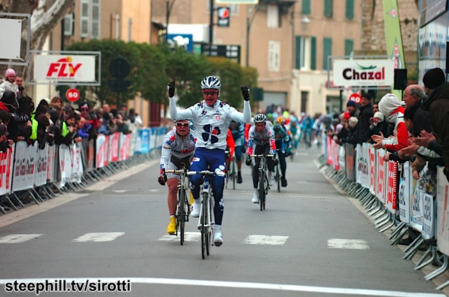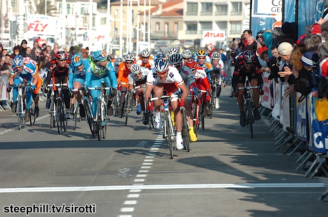 Feburary 12 update: Things should get interesting today. Stage four has two decent climbs and a tricky uphill finish (see map/profile above... course marshalls take note!) in Biot near Nice to shake things up. This stage has Alejandro Valverde's name on it and expect him to be wearing Yellow heading into the Queen Stage on the final day. He looked good testing his legs in the break today. See the race summary links (right) for stage map, profile and timetable.