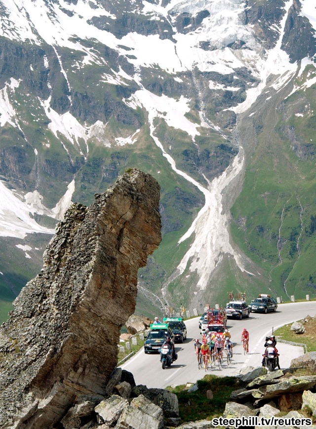 (We are looking for translations in ALL other languages. Please submit your translation with the stage no. and language in the subject title. If you don't see your preview posted within 12 hours then please resend your preview as an attachment if you didn't already do so because we've had problems with some inline character sets like German.) May 19 post: After the longest transfer between host towns without a rest day in this year's race, we are now in very Northern Italy. The fun (beaches) and games (sprint finishes) are now over as this year's Giro d'Italia gets down to serious business. Stage 13 is the third of eight mountain stages and like most of the mountain stages this year it will have a "summit finish." From Spilimbergo, a small town located northeast of Venice we'll head due north into the Italian Eastern Alps, but only one of Friday's four categorized climbs is actually located in Italy. After cresting the day's first climb, the cat 2 Passo di Monte Croce Carnico, the riders will descend into Austria and continue north over two more climbs before finishing on the slopes of the highest mountain in Austria, The Grossglockner. However, the stage will stop short of the actual summit. The Grossglockner is a famous climb used regularly in the Tour of Austria. At 3,798m above sea level, it's not only Austria's highest mountain, it's also the second most prominent mountain in the Alps after Mont Blanc. The road goes up to 2,504m elevation, but Stage 13 will stop at 2,137m. There are two tiers to the finishing climb (profile) with the first portion to Kasereck being given a category 1 rating for its 13.6 km length and average grade of 6.3%. Over the final 7.2 km there is a dip followed by a 6.2% climb for the remaining 4.5 km to the line. It was about 40 years ago that the Grossglockner was last used in the Giro d'Italia. Apparently, there was a controversy at the end of the stage when the race leader was accused of hanging onto a team car after being dropped on a earlier climb. Things haven't changed much. We've had few successful breaks at this year's Giro d'Italia which is rare, but we should see one on this stage because Alberto Contador seems eager to temporarily hand over the race leader's jersey. — Steve