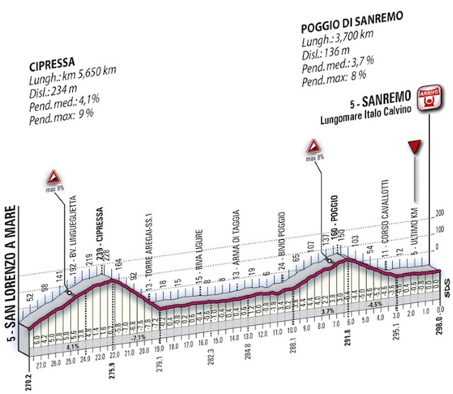 profile | profile last 30 km from Cipressa | profile last 6 km | timetable