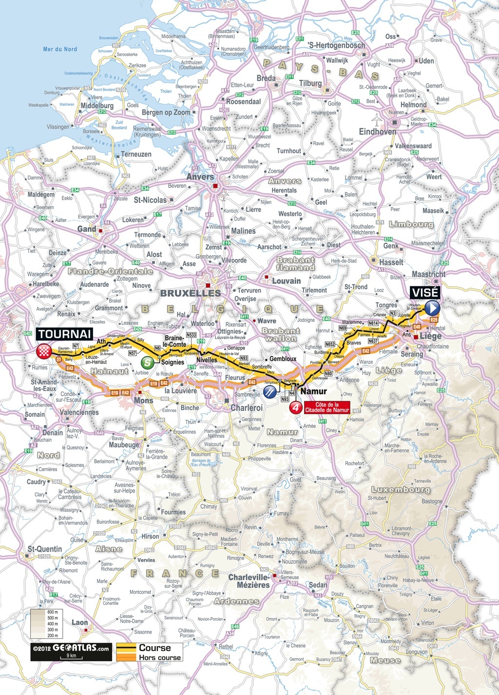 (We are looking for translations in ALL other languages. Please submit your translation with the stage no. and language in the subject title. If you don't see your preview posted within 12 hours then please resend your preview as an attachment if you didn't already do so because we've had problems with some inline character sets like German.) ![]() Cathédrale de Tournai (photo credit: Matthias Lavigne) June 30 update: Stage 2 is the third and final day in Belgium. Starting from Visé, just north of Liége, the Tour will take the most direct route towards France heading west for 208 km before an expected mass sprint finish in Tournai near the border with France. Tournai is one of the oldest cities in Belgium and has been controlled by the French, Austrian, Spanish and English at various points in its history and it is now considered one of the most important cultural sites in Belgium. The mixed Romanesque- and Gothic-style cathedral of Notre Dame de Tournai (photo above) and the belfry, the oldest in Belgium, have been jointly designated by UNESCO as a World Heritage Site. Most of this stage passes through the "lowlands/plains of Belgium" and there is very little elevation change so this day should end with Mark Cavendish's first stage win. Apparently, he's lost 4 kg/ 9 lb as he prepares for the Olympics in London later this summer so we'll see how that has affected his speed. André Greipel (Lotto), Marcel Kittel (Argos-Shimano) and Tylar Farrar (Garmin-Sharp) among others will be looking for the upset. Other than a few roundabouts, the finish should be straight-forward on a wide road. — Steve