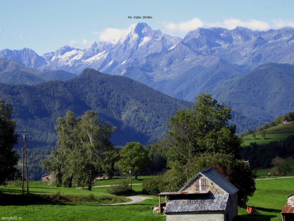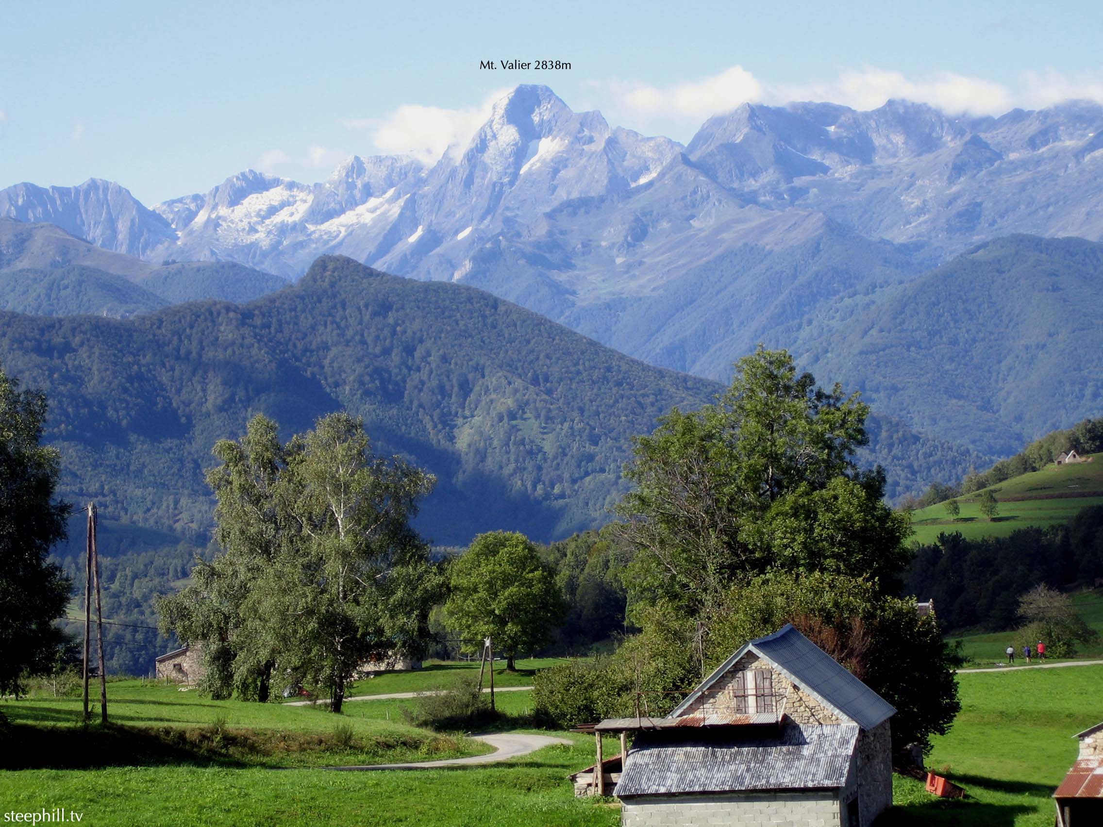 Follow the one-laner through Cominac to three cyclists admiring the French-Spanish Pyrenees