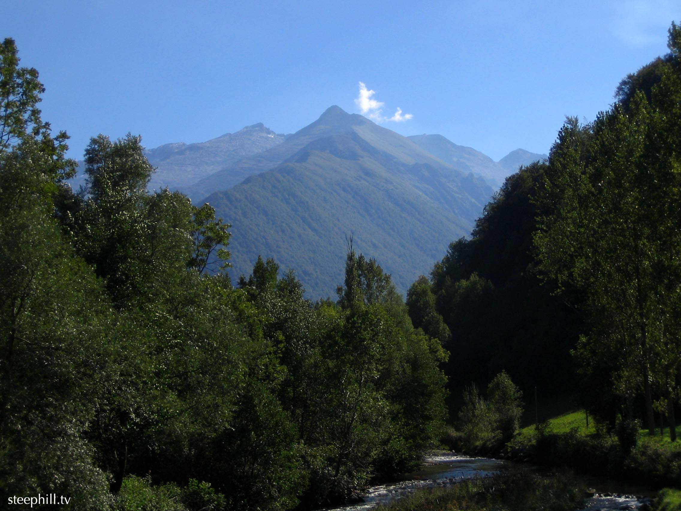 Looking back up to the peaks and Prat Mataou after our 20k descent