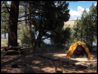Normally in the Markleeville area, I stay at the Grover Hot Springs campground but with the annoying new reservation system and the number of kids in high summer, I thought I'd try someplace else. So I arrived late Friday afternoon at Indian Creek Campground near Woodfords approximately 10 miles northeast of Markleeville in Alpine County near the California-Nevada border. It was only half full, a little surprising for high season. I cased out the joint before making an easy decision on my home for the weekend. Campsite #1 was clearly the best choice and I probably would have chosen it even if the campground were completely vacant. It has a million-dollar view for only $14 a night. Only fellow tent-campers may appreciate the camping photos I took and since few racing roadies camp I may have a small audience. Perhaps most people think camping is uncivilized, but I believe it is far preferable to sharing a small motel room with several messy teammates. However, on this trip, I did notice a few other racers and spoke to someone I recognized from an Oakland team I ride with occasionally. Although Grover Hot Springs and Indian Creek are quite different, they are both excellent campgrounds. Indian Creek has the added attraction of bears milling around at night and occasionally during the day so don't leave any food in your car if you stay there. Over the weekend, they scored some fresh fish, a jar of pickles and a bag of chips from vehicles at the other end of the campground. The bears have never harmed campers so there is no plan to remove them which is now standard park policy.