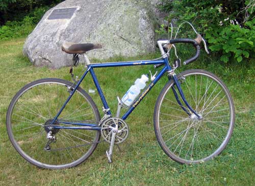 Meanwhile in New Hampshire, Rebecca took time off from a conference she's attending to get in a ride of her own. She rented a "trashbar" (Nashbar) bike, the same one she's previously rented, and cycled up to Winslow State Park located on the northwest slope of Mt. Kearsarge (el. 2937') in Wilmot. Apparently, on a clear day, which Rebecca says occurs once every 10 years, "views extend to the White Mountains, the Green Mountains of Vermont, the Atlantic Ocean and Boston".
