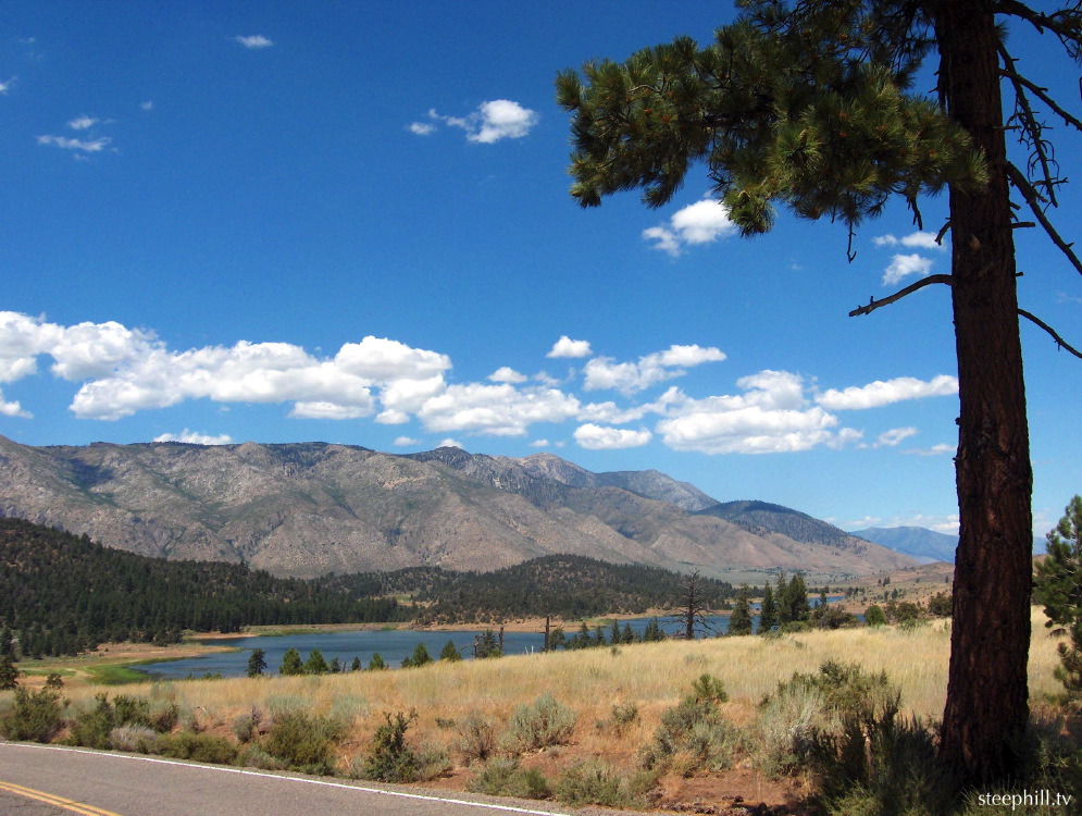 The descending view overlooking Indian Creek Reservoir with the race site in the distance