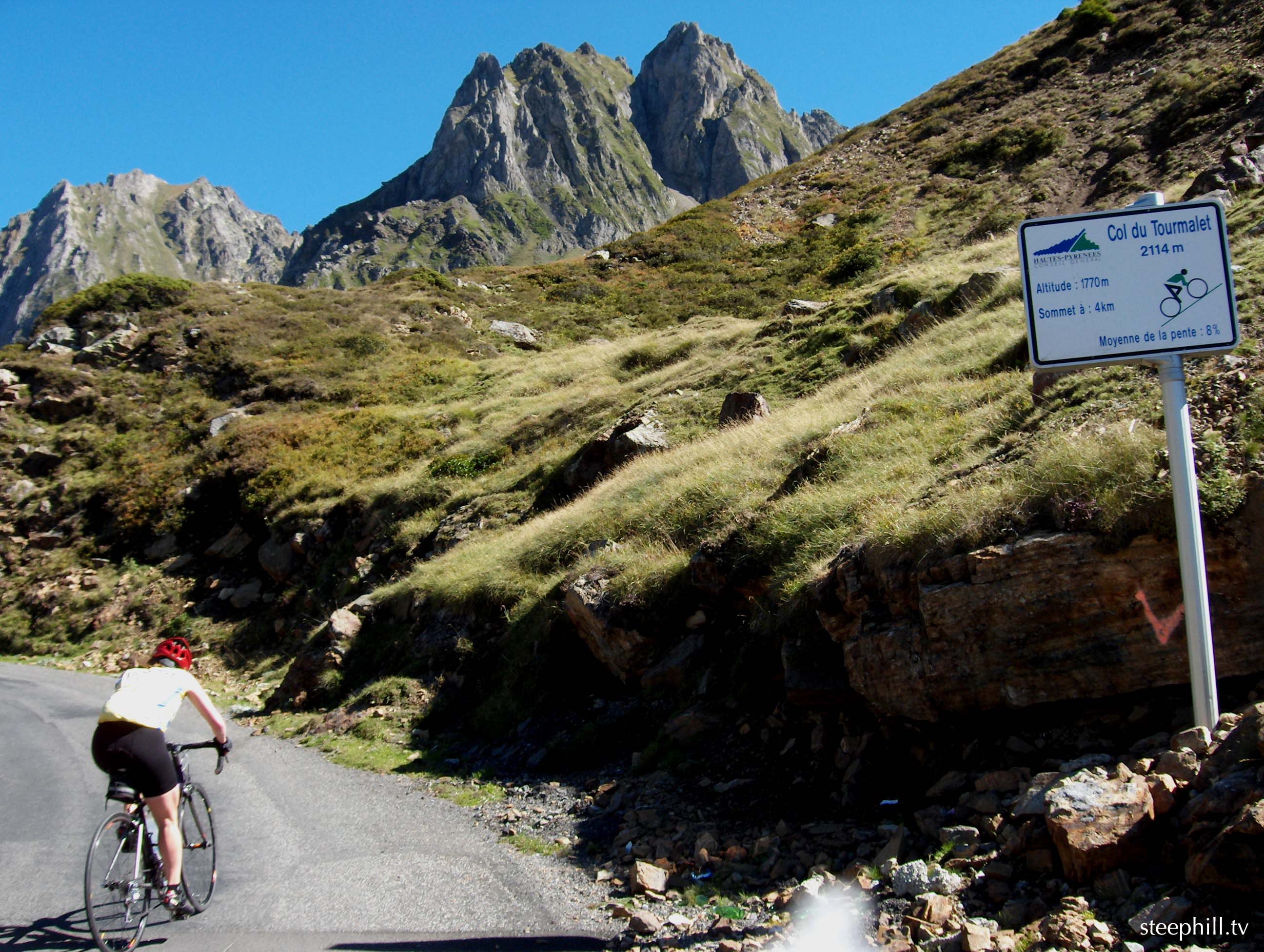As the sign says, 8 pct for the next km and 4 km to the summit