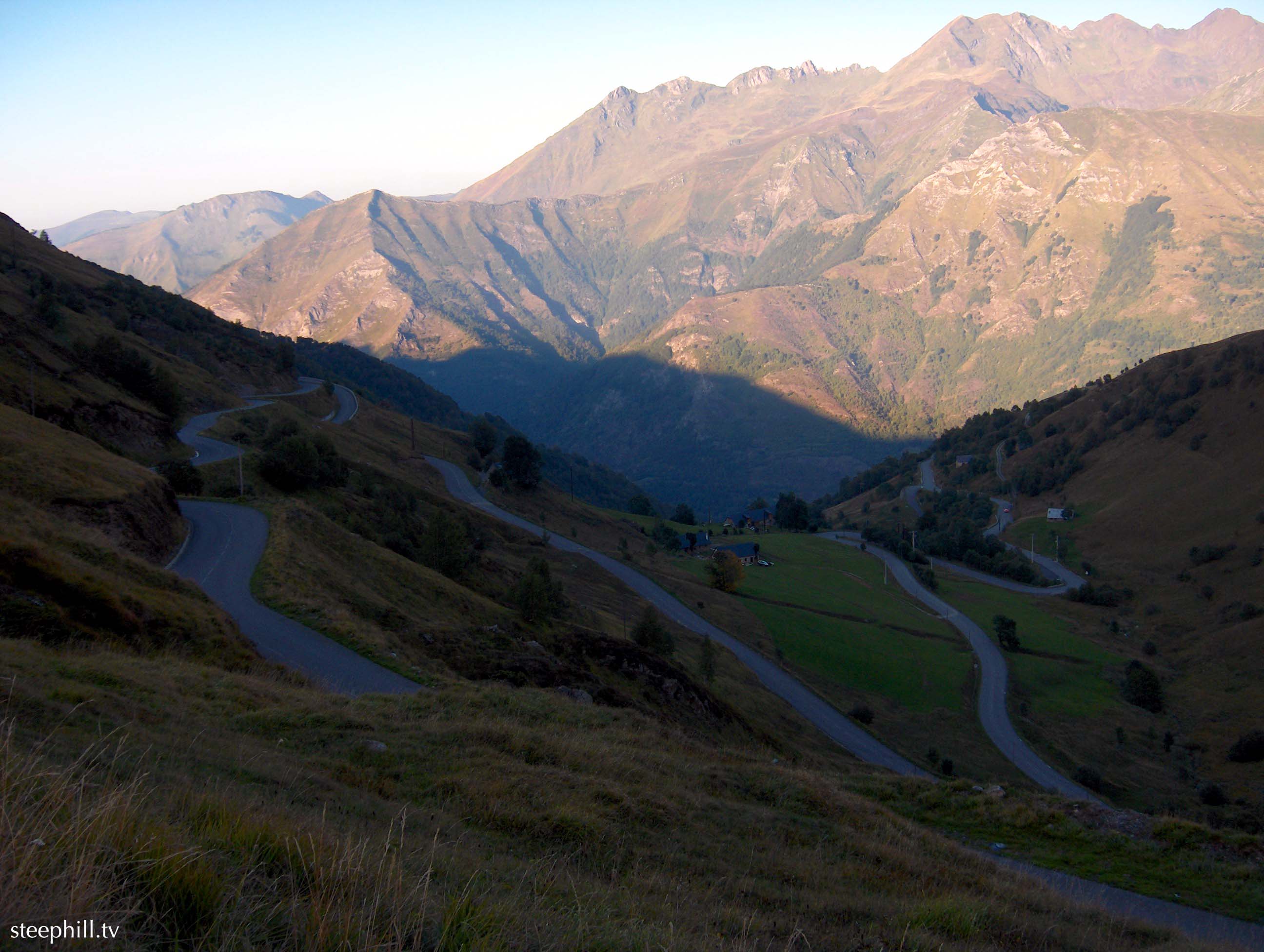 Looking down the Luz-Ardiden switchbacks made famous by the Tour de France. Nobody cares that there is a ski resort at the top, right?