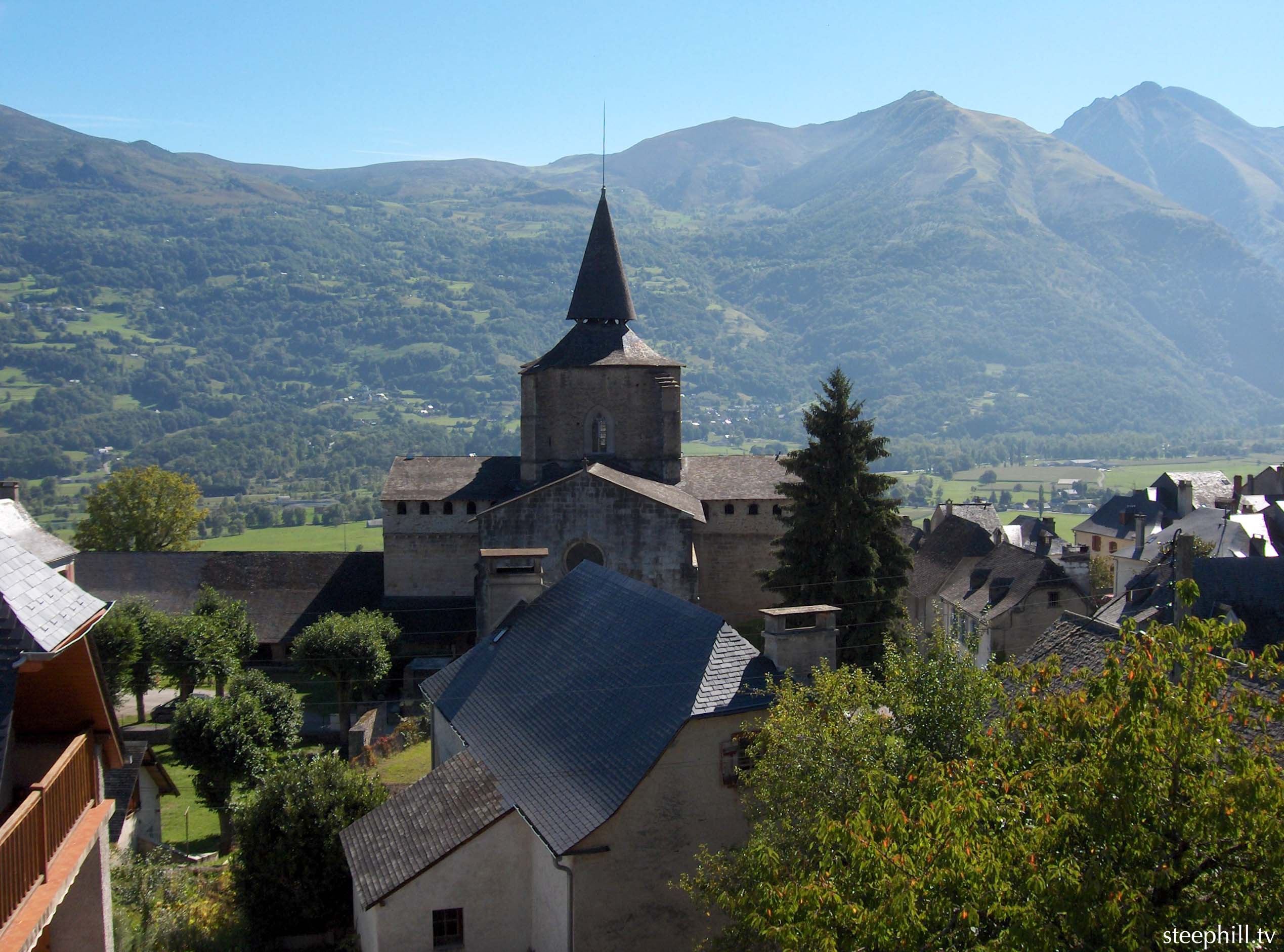 The St. Savin Abby in town square and the Hautacom across the valley, viewed from our hotel room