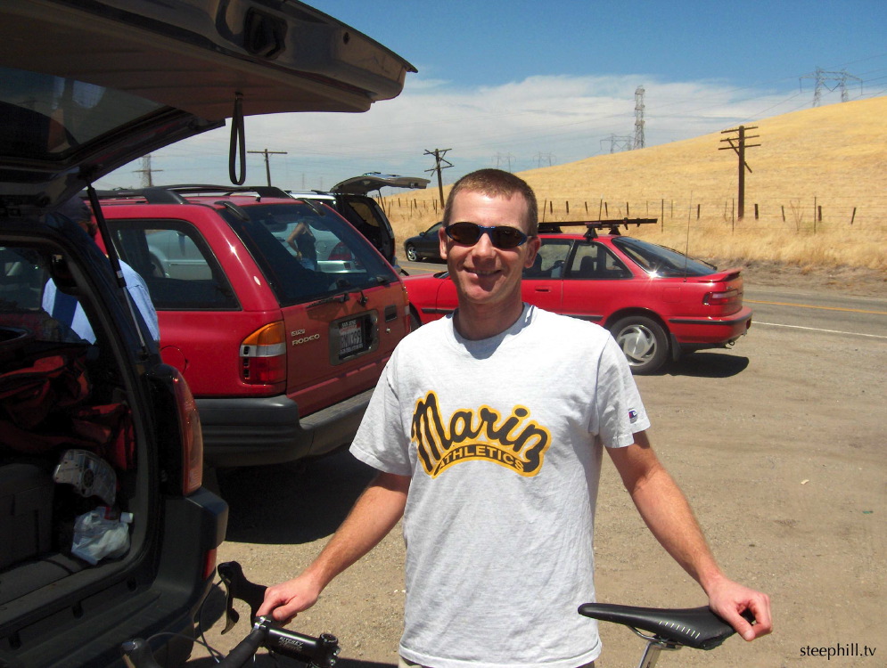 I missed M35 1-2-3 winner, Dario Fredrick, at the finish line but caught him in the parking lot