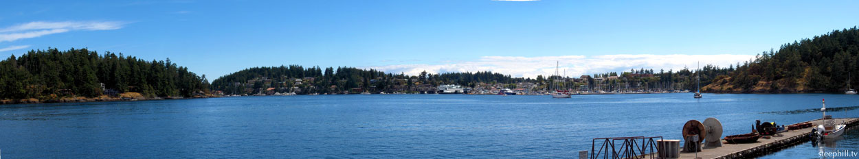 The furthest destination on our two week trip was the archipelago off the northwest corner of the continental United States called the San Juan Islands. Rebecca was invited to give a "talk" at Friday Harbor Labs, a marine biology research facility affiliated with the University of Washington, in addition to her seminar at the main campus in Seattle. We stayed in one of their serene Whitely Center visitor cabins for four relaxing nights. Friday Harbor is located on the largest island called San Juan Island and to clarify, the archipelago is called the San Juan Islands and the largest island in the archipelago is called San Juan Island. The Islands are protected by the mountains on the Olympic Peninsula, giving them 250 days of sunshine a year and half the rain that Seattle gets some 60 miles away. In addition to the temperate year-round weather, the scenery and seclusion make this a popular destination for vacationing and year-round retirees. For now, it's still a relatively unknown place, but escalating real estate prices are an indication things are changing.