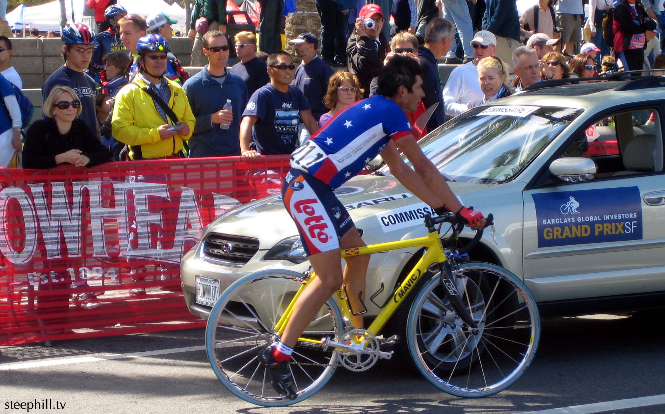 Fast Freddie looking to return a neutral support bike after his own bike was run over a police motorcycle during a mechanical stop
