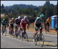 Another excellent Velo Promo race course. Every race blew apart on this difficult, hilly course located on the University of California, Santa Cruz campus. Since we'll be away part of September, this will be the last race we cover this year. Thanks for the nice comments regarding our race coverage and this site in general. We currently dub ourselves amateur photographers for amateur racing, but next year we'll step up the quality of our work when we buy some new equipment, slated for release this fall. Throughout the fall, I'll be catching up posting race photos from last spring, recreational photos from the spring and 2004 and updating the site regularly with new content including our cycling trip in France this September.
