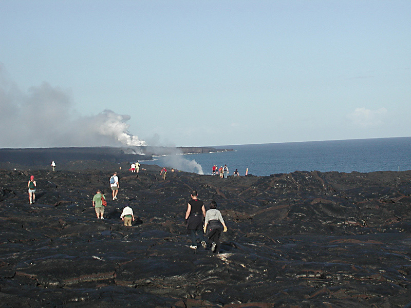 It's a four mile hike over lava to get a good view of the fresh lava flowing into the ocean