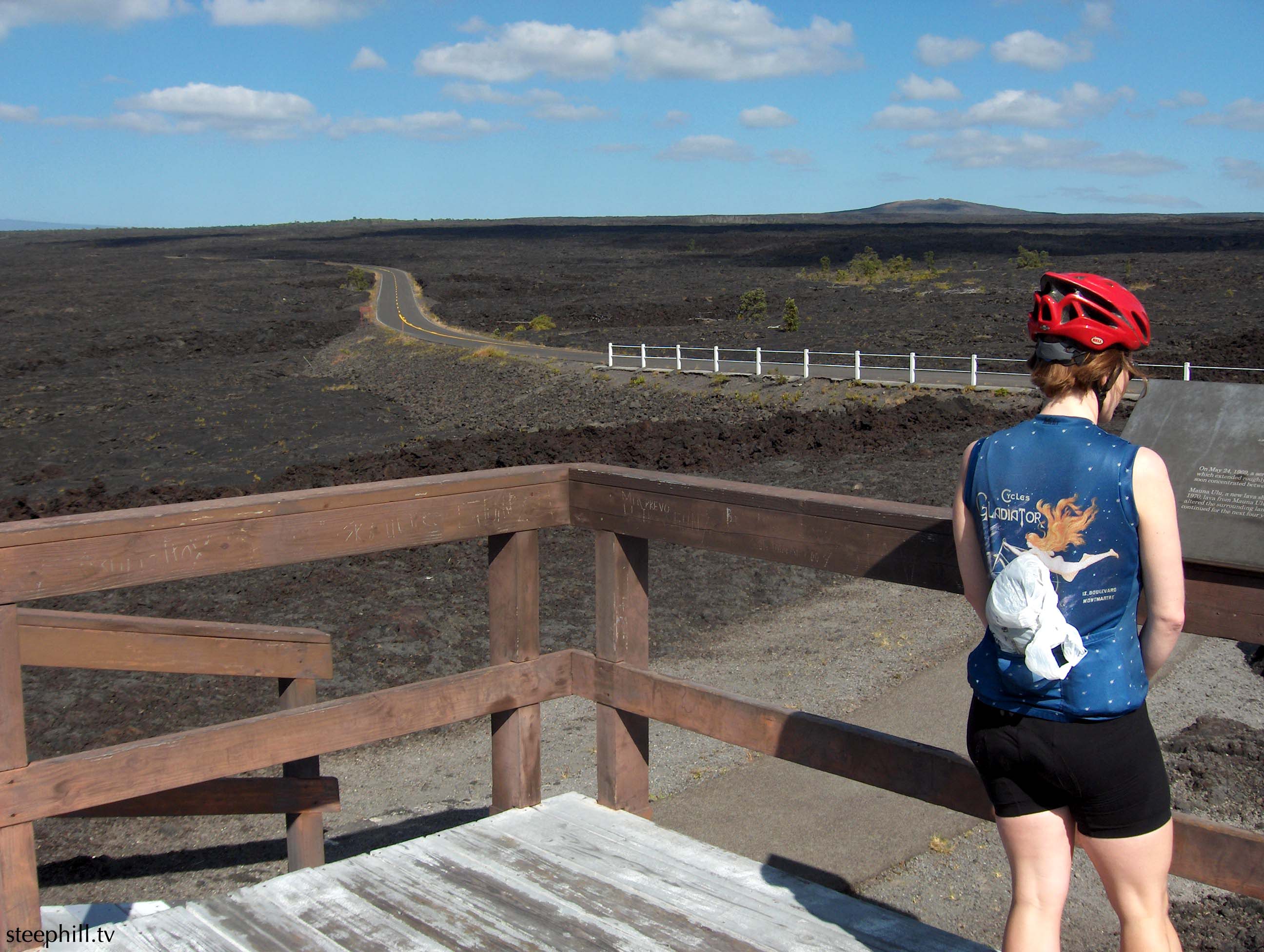 Reading up at the Mauna Ulu lava flow lookout on Chain of Craters Road