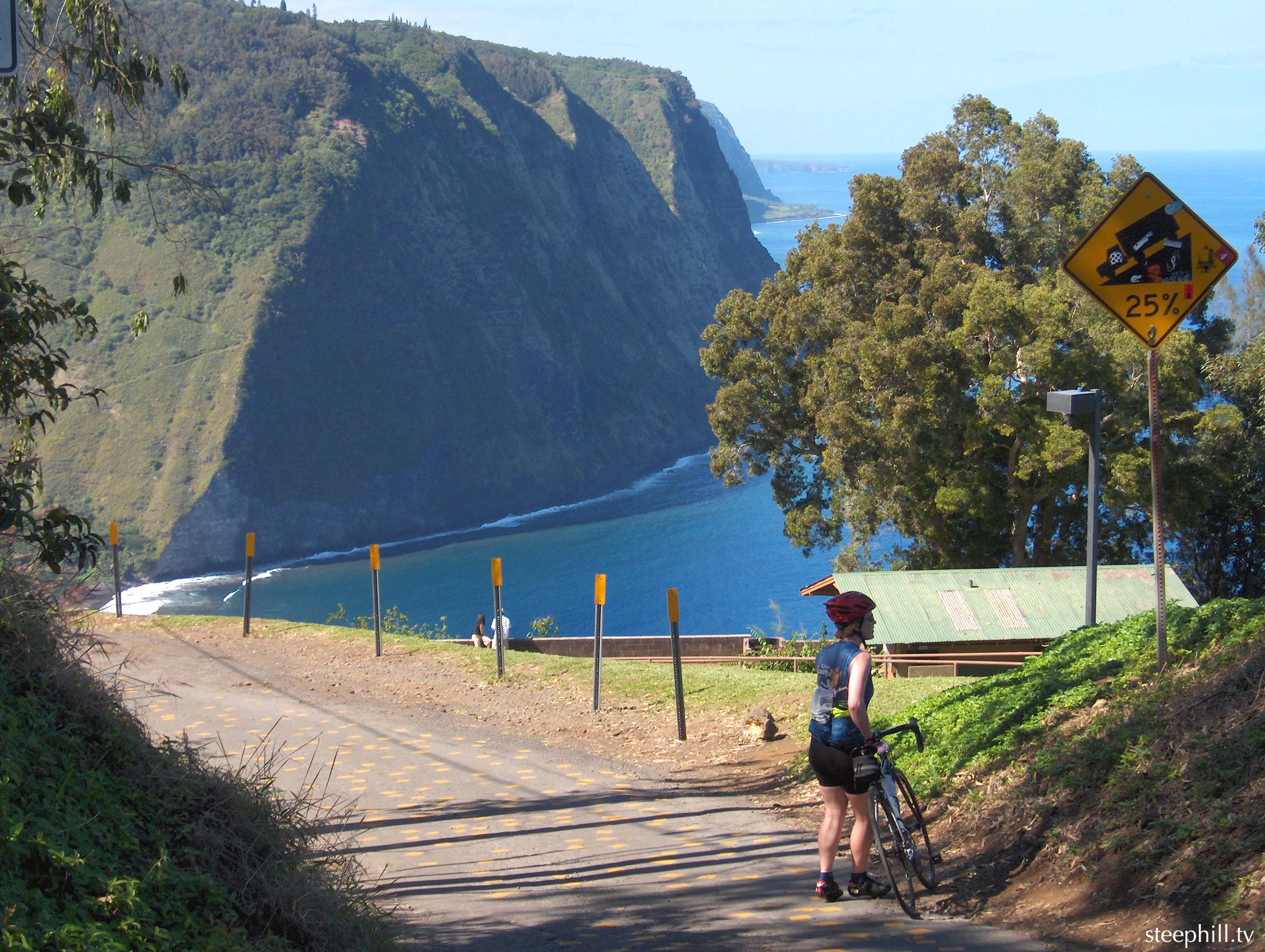 Dismounting for the 25% grade, .75 mile hike to the valley