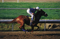 A fast shutter speed and perfect timing answer an old question: Can a galloping horse have all four hooves off the ground at the same time? Photo by Lynne Eodice